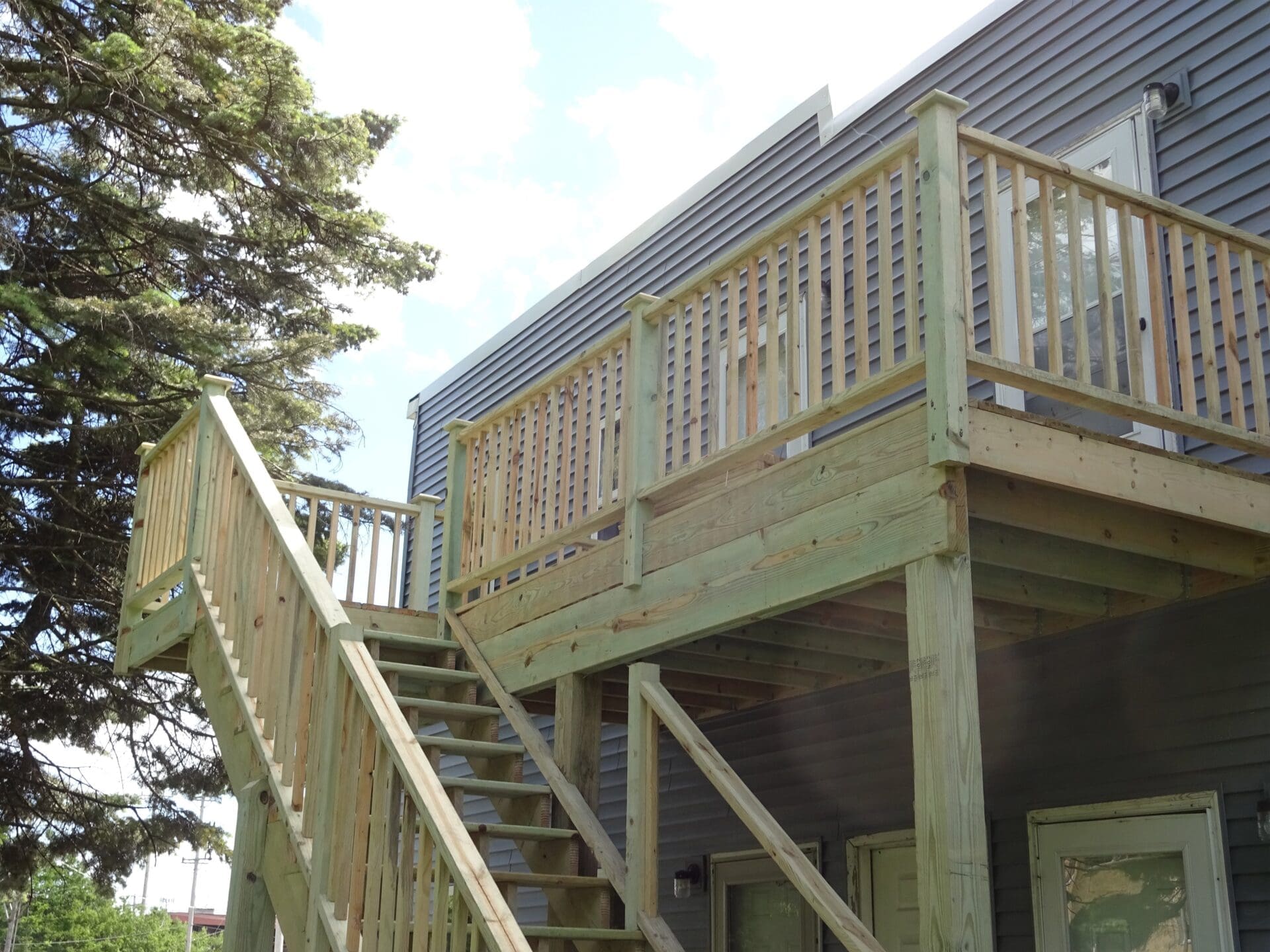 Construction of a patio deck and staircase to a residential building.